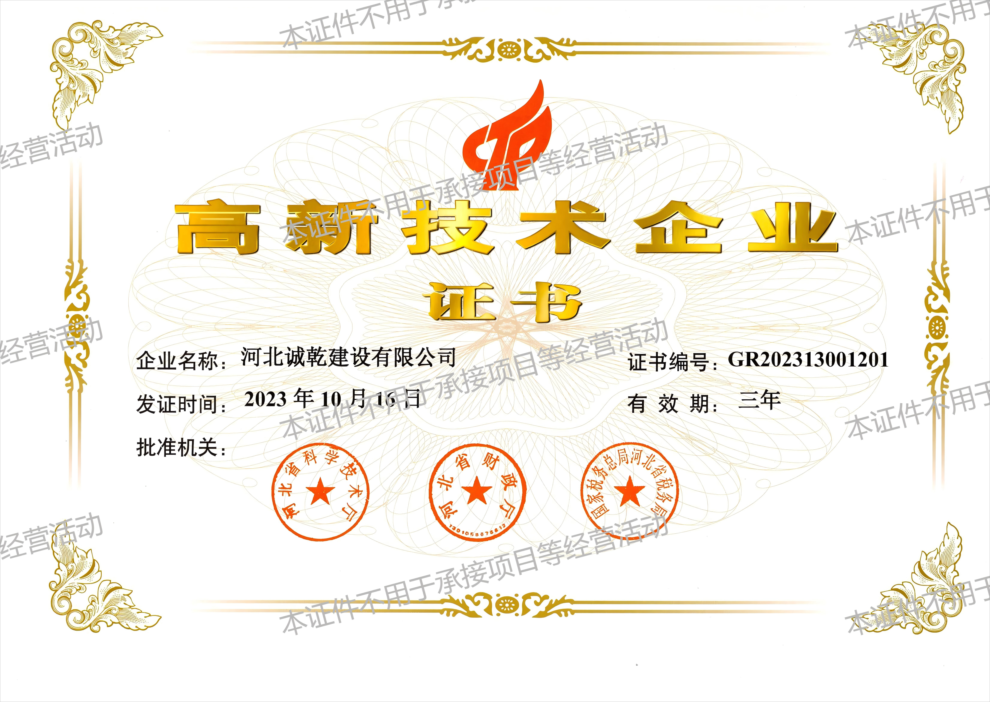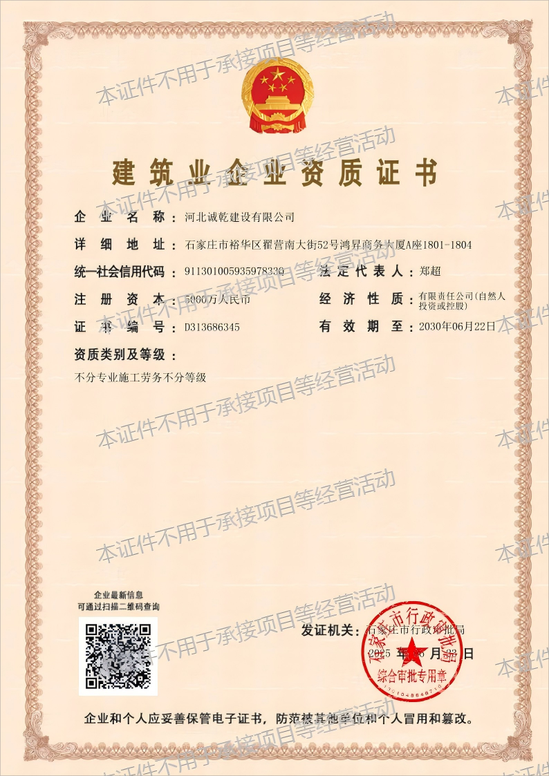恭賀河北誠乾環(huán)保工程有限公司取得市政公用工程施工總承...